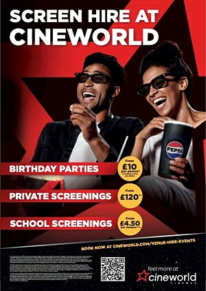 Cineworld is a 5-screen multiplex cinema, located at the heart of The Crescent retail and leisure development in the centre of Hinckley. As part of the Regal Cineworld Group, the second-largest cinema operator in the world, we're driven by a passion for innovation, bringing you the latest in cutting-edge cinema technology to create unforgettable experiences for stars of all ages. Our customers are at the heart of everything we do, and our people are our greatest strength. Their dedication makes every moment special, from the warm welcome at the door, to the freshly popped popcorn served with a sprinkle of joy.