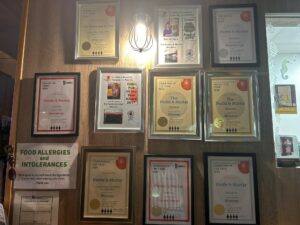 We serve pork pie with mustard and Stilton and freshly made cobs with fillings such as cheese and onion. We also have a large selection of nuts to nibble on!