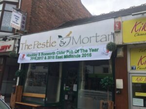 Sue opened the doors in August 2015, making the Pestle and Mortar Hinckley's first micropub. It is a traditional bar with a quirky twist which you will see from the pictures or when you visit.