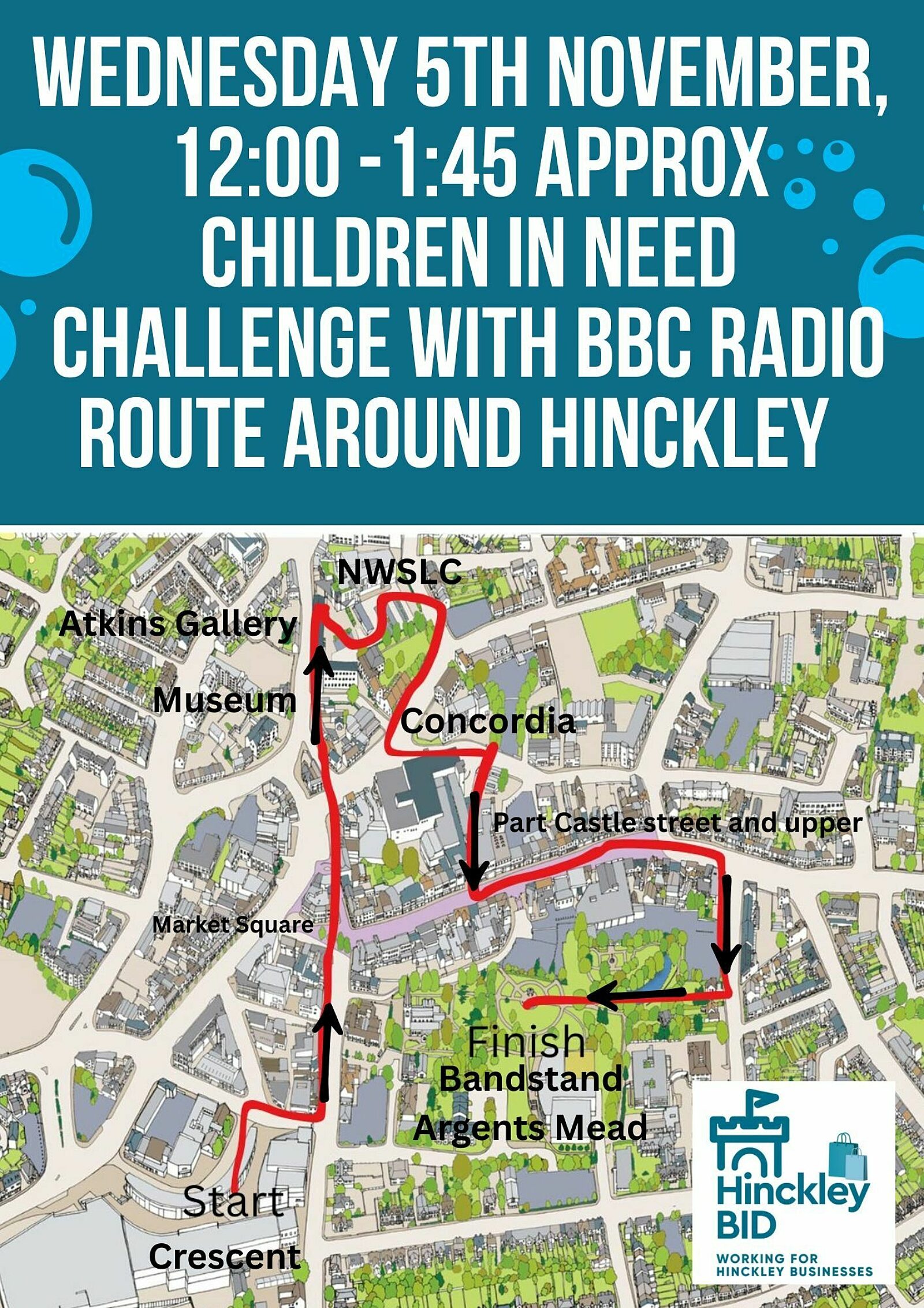 Line the route of Pudsey Bear's exciting walkabout with BBC Radio Leicester in Hinckley town centre!