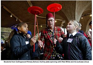 Roll up, Roll up! Come and see Pete's Suitcase Circus, a comedy street show full of circus skills, comic inventions, audience participation and family fun. 4 x 30 minute shows at 11:00, 12:00, 14:00 and 15:00.